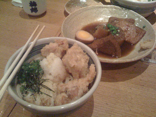 左は一滴八銭屋のかしわぶっかけうどん。