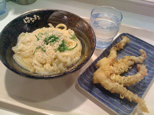 右ははなまるうどん。のかま玉。久し振りに食べた。最初に食べた時の感動は完全に無くなった。醤油などの方が断然旨かろう。ゲソ天は良かったで下衆。